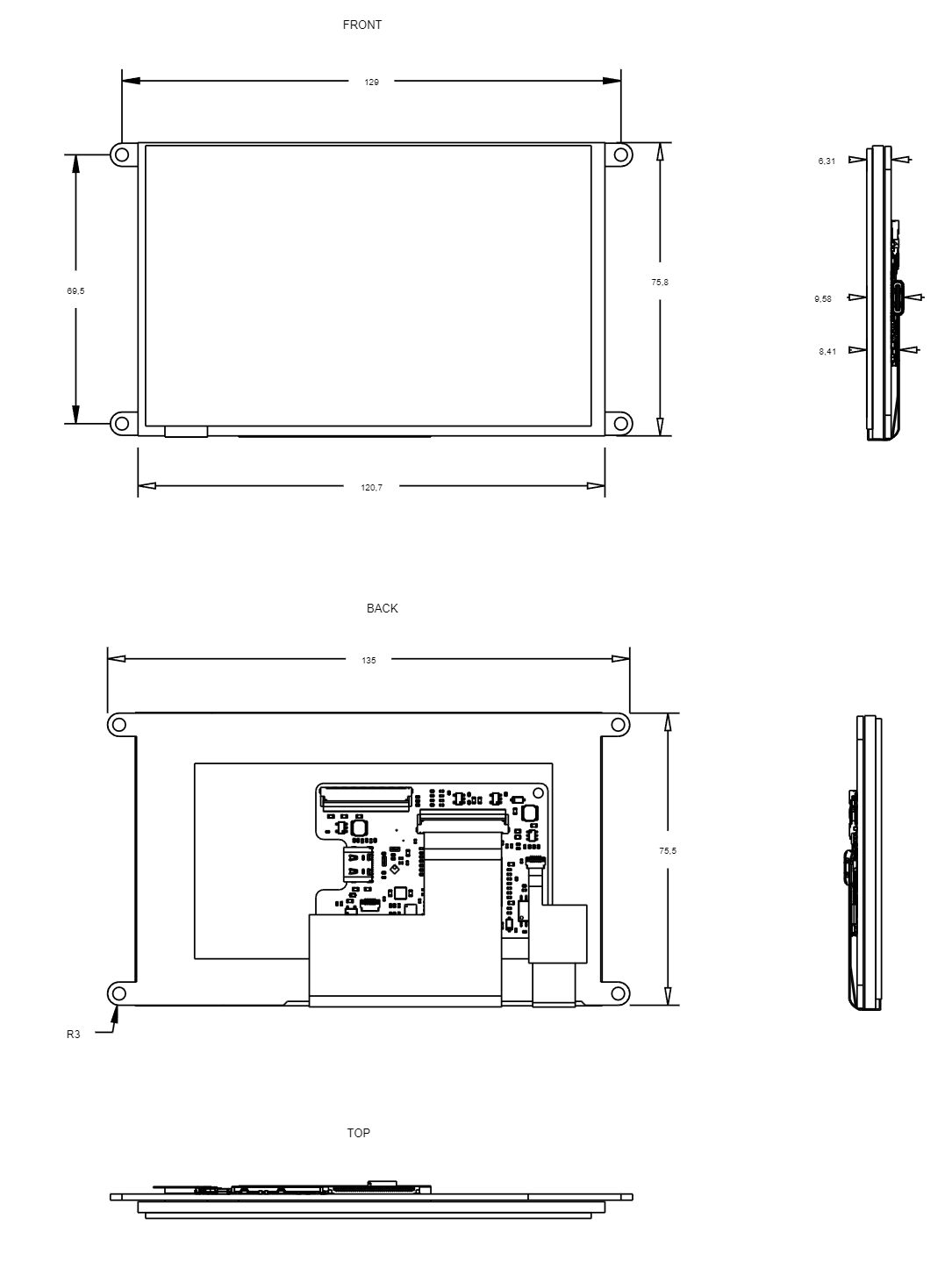 5" TFT display with USB interface for use with a PC or embedded devices with USB host.